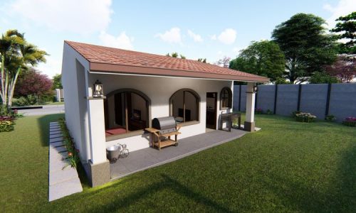 Se contempla un espacio unificado para sala - comedor - cocina, además cuenta con tres dormitorios y un baño. Se realiza una extensión del techo en la zona trasera de la vivienda, para destinarse a lavandería.